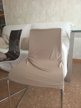 LEGGI TUTTO Set di quattro sedie vintage di design italiano con struttura cromata e seduta con cuscini in ecopelle bianca inclusi, il prezzo è più della metà del costo, sono riservate da Bizum e la misura è a carico dell'acquirente, non cambio e non faccio sconti, vengono vendute tutte insieme, il tempo è uguale per tutti se non siete interessati all'acquisto davvero non fatemi perdere, vendo molte cose a causa di un cambiamento di residenza Non vivo più a Madrid, vendo pezzi originali, non copie o imitazioni, proprio come puoi vedere le recensioni - Gambe della sedia in metallo. Design vintage. - Cuscino in pelle sintetica.