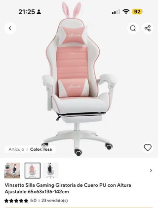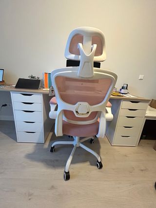 Sedia ergonomica dal design moderno, ideale per il tuo spazio di lavoro o di gioco. Il suo colore rosa le conferisce un tocco distintivo. Leggera e comoda. - Schienale traspirante e regolabile. - Sedile imbottito e regolabile. - Braccioli comodi. - Base con ruote per una facile mobilità. Nuova e nella sua confezione originale. Arrivata con un piccolo difetto nel tessuto, da cui il suo prezzo.
