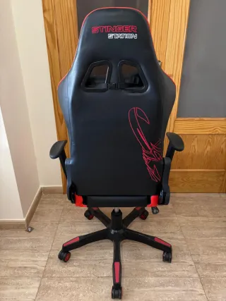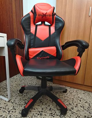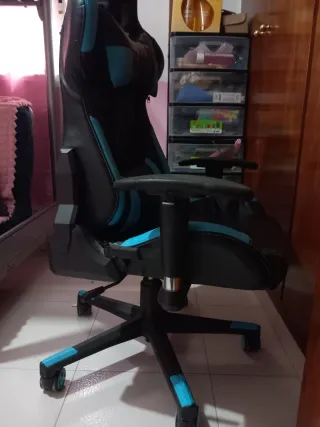 Sedia da gaming con design ergonomico. - Schienale alto con supporto lombare. - Braccioli imbottiti. - Base girevole con ruote. 25€. In perfetto stato. Situata a Madrid.