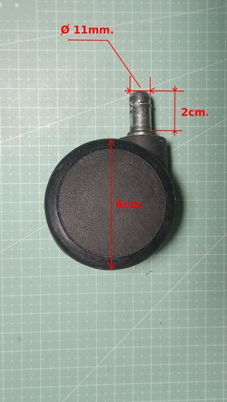 Set di 5 ruote doppie per sedie da ufficio o gaming. Progettate per facilitare il movimento e la durabilità. Diametro della ruota: 6 cm. Diametro del gambo: 11 mm. Lunghezza del gambo: 2 cm.