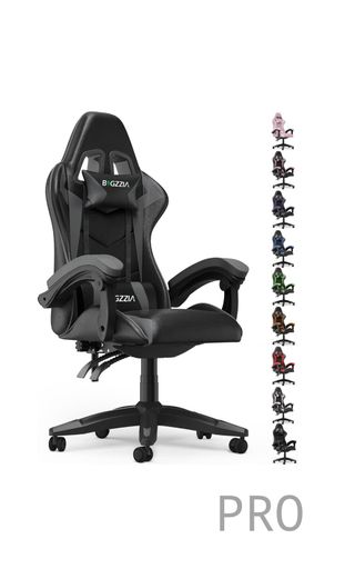 Sedia ergonomica per gaming, sedia per PC con altezza e inclinazione regolabili, pelle sintetica con poggiatesta imbottito, sedia da gioco per bambini, adolescenti e adulti, ideale per ufficio (nero-grigio)