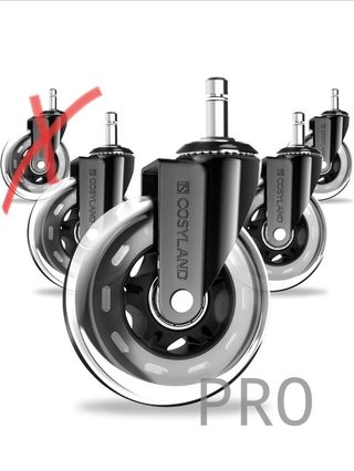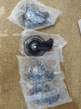 Set di ruote di ricambio per sedie. Compatibili con sedie da gaming o da ufficio. Realizzate con materiali durevoli. Design radiale, non massiccio, che aumenta la loro durata.