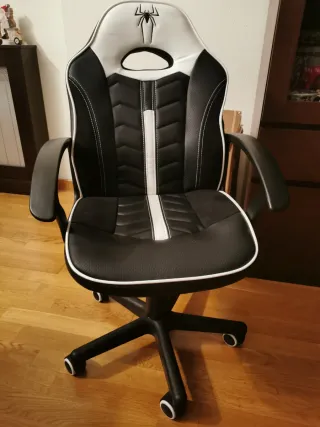 - Prezzo molto economico. - Funziona tutto perfettamente: ruote, pistone idraulico d'altezza, inclinazione dello schienale, il prezzo è solo dovuto all'usura della pelle sintetica per sfregamento. - Ha costato 150€. - Attualmente la abbiamo rivestita con un tessuto nero (non incluso) o la si può coprire con un tessuto a piacere. - Sedia ergonomica per computer o studio con design sportivo, per bambini o adulti. - Leva per regolare altezza e inclinazione dello schienale. - Base girevole con ruote in nylon per facile mobilità e adatte per parquet. - Schienale alto, 71 cm utili. - Sedile largo, 54*53. - Pelle sintetica. - Braccioli imbottiti pieghevoli. - Peso Max 120kg.