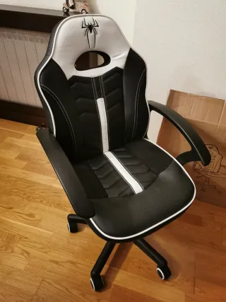 Sedia da scrivania con un design moderno e confortevole, del marchio shiito, modello Goblin Spiderman. È nuova, mai utilizzata, poiché ne sono state ordinate due per errore e l'altra è ancora nella scatola. - Rivestimento in similpelle. - Base in plastica resistente con ruote. - Dettagli di cucitura bianca.