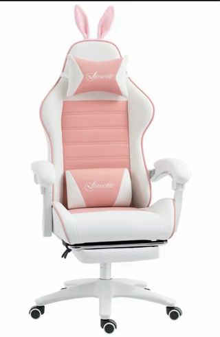 Sedia da gaming Vinsetto con un design accattivante e comfortevole. - Rivestimento in similpelle. - Dettagli in rosa e bianco. - Include cuscini per la testa e la zona lombare.