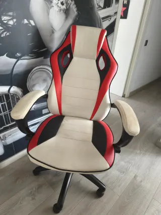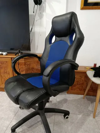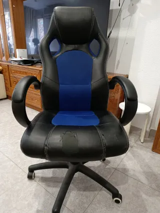 Sedia da scrivania ergonomica con design sportivo, ideale per la tua zona studio, lavoro o gaming. Rivestimento in similpelle nera con cuciture a contrasto. Base con ruote per facile mobilità. Schienale alto e sedile imbottito. Perfetta tranne un minimo sfregamento sui braccioli. Ritiro possibile a Medina-Sidonia. Insieme alla scrivania per computer nella foto, li lascerei a 65€.