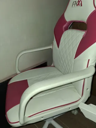 Sedia da scrivania con un design moderno in rosa e bianco. - Rivestimento in similpelle. - Base a 5 ruote per facile mobilità. - Schienale ergonomico, ideale per cameretta, studio o lavoro da casa. Ha le ruote ed è regolabile in altezza, molto comoda e pratica per l'uso quotidiano. È in perfette condizioni, ha solo un po' di polvere per non essere stata usata e un piccolo graffio nella parte posteriore che si può vedere nelle foto, potrebbe essere rimosso con una buona pulizia, ma non ha rotture né difetti. Funziona perfettamente. La vendo perché non la uso più.