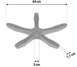 Base a forma di croce per sedia, con dettagli in rosso. Realizzata in nylon resistente. Design a cinque punte per una maggiore stabilità. Dimensioni universali.