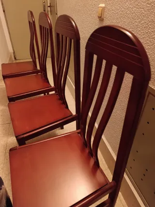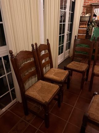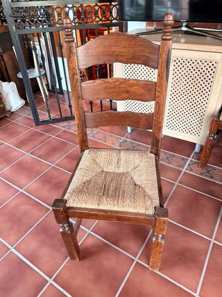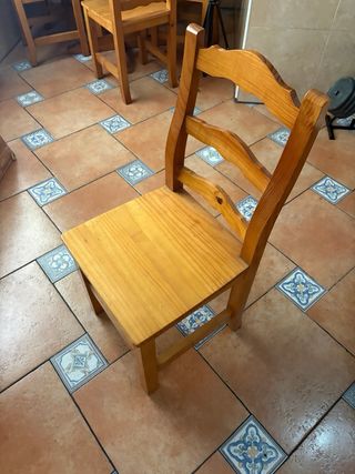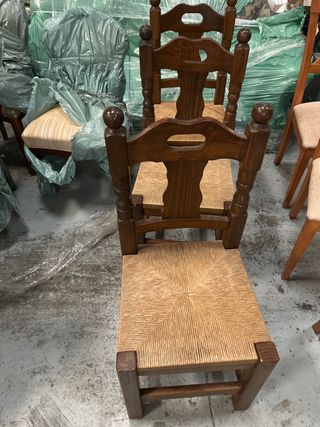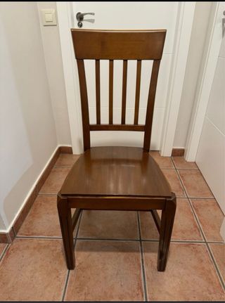 Set di 20 sedie in legno massello in ottimo stato. Si vendono insieme o possibilità di vendita per unità (da consultare). Sedia in legno massello in ottimo stato, solida e stabile. Design classico/rustico, ideale per sala da pranzo, cucina o casa di campagna. Ha uno schienale alto e un sedile ampio, molto comodo e resistente. Finitura in tonalità legno naturale, facile da abbinare a qualsiasi ambiente. ✔️ Struttura robusta ✔️ Legno di qualità ✔️ Senza rotture né giochi ✔️ Uso normale, ben curata. Perfetta sia per l'uso quotidiano che per la decorazione.