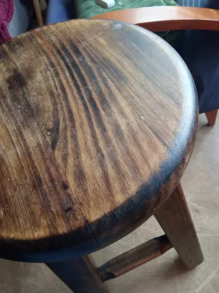 Sgabello alto in legno massello con un design robusto e rustico. Per ritiro a Valencia o Castellón.
