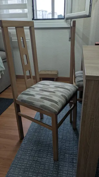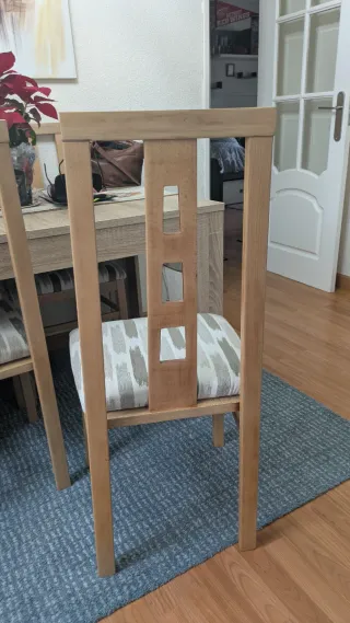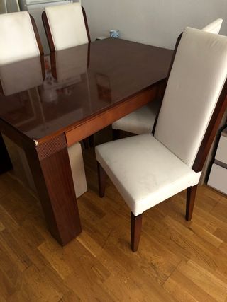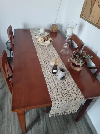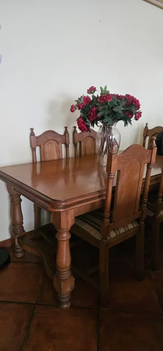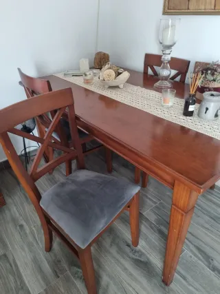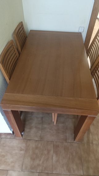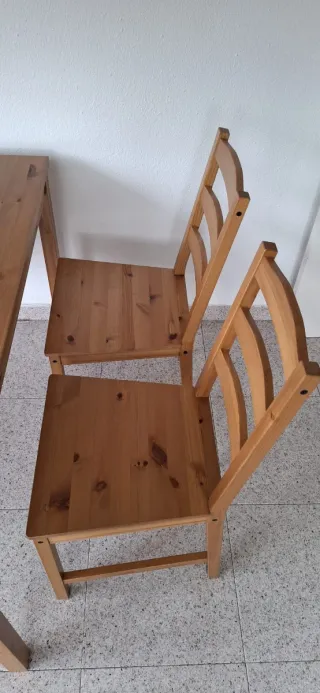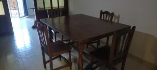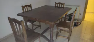 Set da pranzo con tavolo e quattro sedie abbinate. Ideale per dare un tocco caldo alla tua casa. - Tavolo in legno massello. - Include 4 sedie in legno. Paseo de la Castellana 205 primo B scala 1
