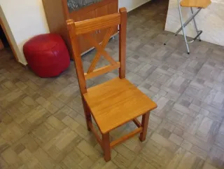 Si vendono quattro sedie in legno di pino massello. Sono robuste e di buona qualità. - Realizzate in legno di pino massello. - Design classico e funzionale.