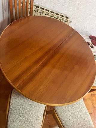 Tavolo da soggiorno in legno massello. Rotondo, elegante e in buone condizioni. Ha un diametro di 1 metro ed è estensibile al centro (+60 cm), perfetto per riunioni, cene con amici o celebrazioni familiari. Ideale come tavolo principale in soggiorno o sala da pranzo, specialmente ora a Natale. Il tavolo è ben curato e stabile, con un design classico che si adatta a qualsiasi stile di soggiorno. Regalo le sedie con l'acquisto per poterlo usare dal primo giorno. (sporche di polvere) Lo vendo per cambio di mobili.