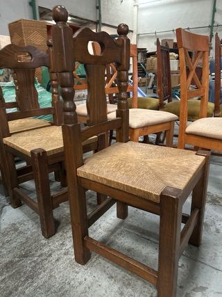 6 sedie in legno massello con seduta impagliata.
