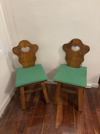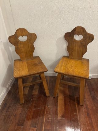 Set di due sedie in legno massello con un delizioso design. Realizzate in legno massello, con schienale sagomato a forma di cuore e gambe robuste per una maggiore stabilità.