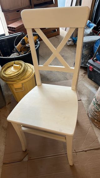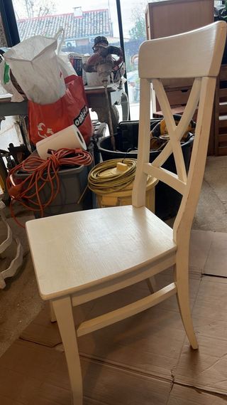 Vendo sedia in legno dipinta di bianco, resistente e stabile. È in buone condizioni, con lievi segni normali dovuti all'uso (vedi foto). ✔️ Legno robusto ✔️ Design classico ✔️ Pronta all'uso