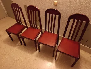 Set di quattro sedie in legno massello in buone condizioni. - Sedile in enea. - Design classico ed elegante. - 30 € a unità. 120 € per le 4 sedie