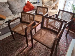 Set di 4 sedie in rattan e legno massello