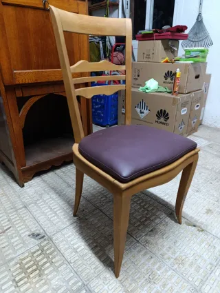 Set di seggiole in legno massello, pronte per essere personalizzate. - Struttura in legno massello. - Sedili in pelle pronti per il rivestimento.