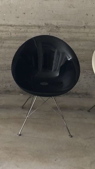 Iconica sedia Eros|S| di Kartell progettata da Philippe Starck. - Sedile in plastica. - Base Eiffel in acciaio cromato. Perfetta per casa e ufficio. IMPORTANTE: Una delle gambe è allentata (vedi ultime foto). Da qui il suo prezzo.