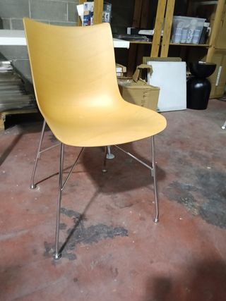 Sedia iconica dal design moderno, creata da Philippe Starck per Kartell. La sua forma avvolgente e i materiali lo rendono un pezzo unico. - Seduta in plastica trasparente di colore giallo. - Base in metallo con gambe sottili.