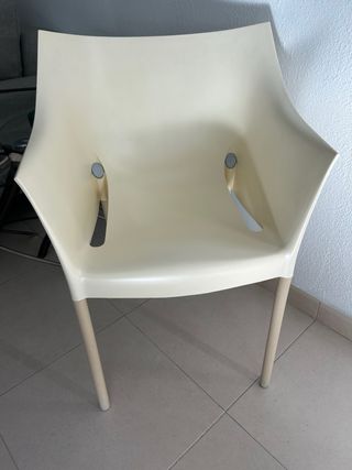Set di sedie italiane Maui di Kartell, con un design moderno ed elegante. 20€ ciascuna. - Seduta e schienale in plastica. - Gambe in metallo. - Impilabili per un facile stoccaggio.
