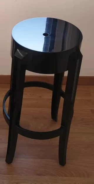 Taburete di design moderno ed elegante in policarbonato nero. È della marca Kartell ed è il modello Charles Ghost. - Seduta rotonda - Gambe stilizzate. - Poggiapiedi integrato. - Design moderno. Ho 2 taburetes se acquistate entrambi insieme il prezzo sarebbe di 250 euro. #taburete #kartell #charlesghost