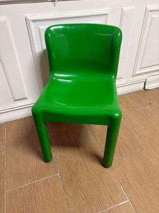 Sedia di design Kartell, perfetta per aggiungere un tocco di colore. Sedia mod. 4875 in plastica di color verde . Lo schienale e la seduta sono tondeggianti. I piedi sono a sezione tonda. Prodotte dal Kartell nel 1970 e disegnate da Carlo Bartoli.Logo presente sotto la seduta. Discrete condizioni, le sedie presentano segni sparsi dati dal tempo e dall'utilizzo. Ma non rotture Space age La sedia 4875 per Kartell, la prima al mondo realizzata in polipropilene, parte della collezione design del Centre Pompidou di Parigi alta 72 cm, larga 42 cm profonda 40 cm, altezza - Linea moderna e sinuosa. - Materiale resistente e facile da pulir
