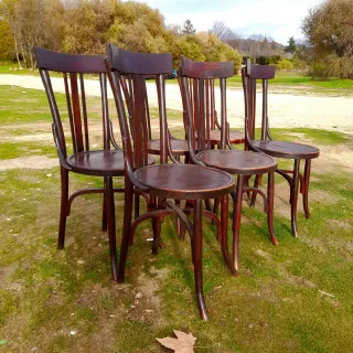 Set di sedie THONET con un design classico ed elegante. Realizzate in legno. Colore marrone scuro. 30 € l'unità. Quante ne vuoi?