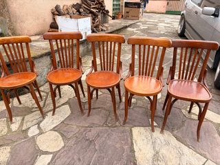 Set di sedie in stile Thonet, perfette per dare un tocco classico a qualsiasi spazio. Design iconico. Realizzate in legno. Colore marrone. Stock: 6 unità. Prezzo: 30€ l'unità.