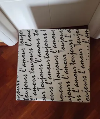 Elegante pouf con un motivo L'amour Toujours in stile calligrafico. Aggiunge un tocco di stile a qualsiasi ambiente. - Design bicolore bianco e nero. - Rivestimento in tessuto. - Misure cubo da 40 cm circa.