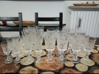 Servizio completo di bicchieri in cristallo vintage 🍷: - 24 pezzi. - Design classico e raffinato. - Dettagli incisi sulla superficie. - Base stabile. - Come nuovi. - Assicuro imballo adeguato. - Vendita solo di persona, non spedisco.