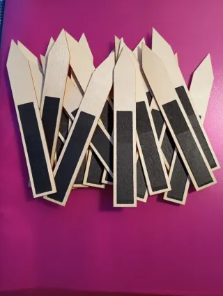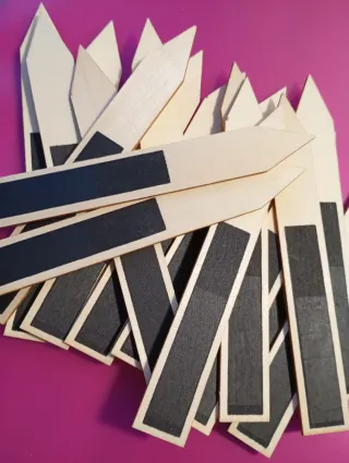 Set di 18 legnetti in legno, ideali per etichettare le tue piante. - Materiale: legno - Colore: legno naturale con striscia nera - Quantità: 18 pezzi
