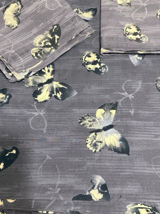 Set copripiumino con federe abbinate, caratterizzato da un design con farfalle su sfondo grigio/blu notte e dettagli color panna. - Fantasia con farfalle. - Include federe.
