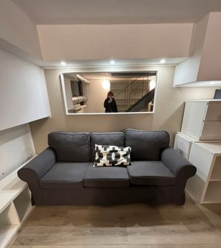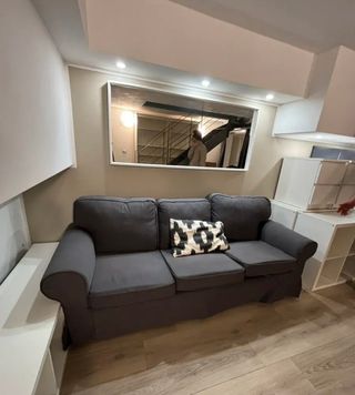 Comodo divano ERKTOP a 3 posti, colore grigio antracite, in ottime condizioni. - Design moderno e lineare. - Sedute ampie e confortevoli. - Tessuto resistente e piacevole al tatto.