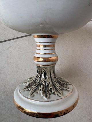 Elegante alzatina o vaso decorativo, un pezzo d'arredo che porta con sé il fascino degli anni '60. - Altezza: 20 cm - Diametro: 25 cm - Finiture in oro e bianco.