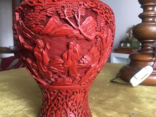 Vaso ceramica rosso intagliato motivi orientali