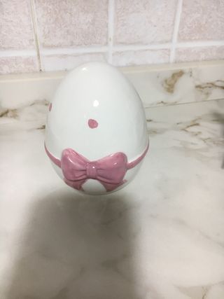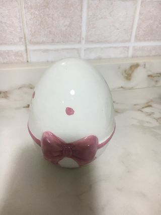 Deliziosa decorazione a forma di uovo, perfetta per la Pasqua. Presenta un grazioso fiocco rosa applicato. - Design a forma di uovo. - Dettaglio fiocco rosa. - Realizzata in ceramica.