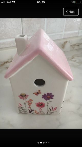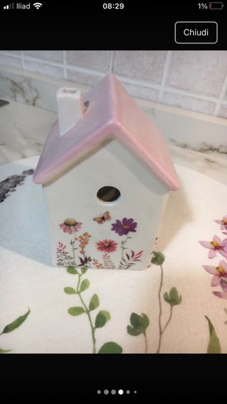 Casetta decorativa ceramica fiori farfalla