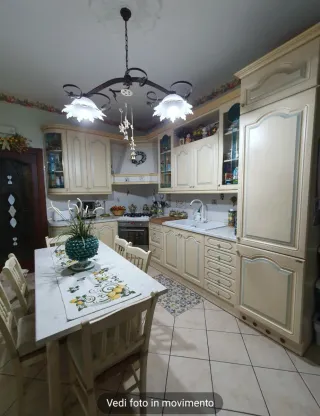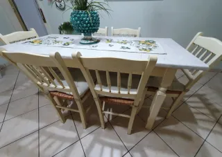 Cucina componibile in stile classico, con finiture eleganti. Misura 2.10 × 3.50 compresa di tavolo con 6 sedie frigo forno e piano cottura - Ante con dettagli curati. - Ampio piano di lavoro. - Spazi contenitivi ben distribuiti.