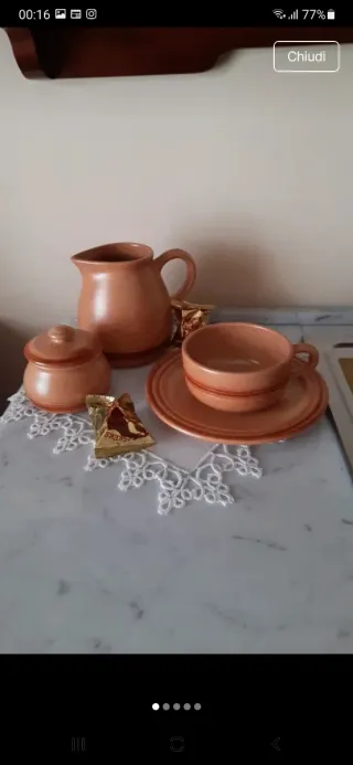 Elegante set da colazione in ceramica, perfetto per iniziare la giornata con stile. - Brocca - Zuccheriera - Tazza con piattino