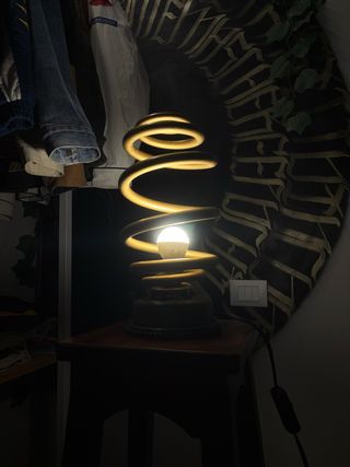 Lampada unica realizzata a mano con una molla in stile industriale. Un pezzo d'arredo originale che aggiunge carattere a qualsiasi ambiente. - Base in metallo. - Dettagli dorati.