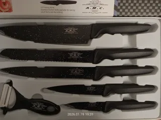 Set di 6 coltelli da cucina A.M.C. con rivestimento antiaderente. - Manico ergonomico anti-slip. - Lama con rivestimento antiaderente per una pulizia facile. - Lame con rivestimento antibatterico.... Nuovi!!!! Prezzo regalo!!!! Affare!!!!