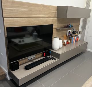 Come da foto in allegato vendo parete attrezzta Modulnova colore Atmosfera (Fango) con mensoline e Boiserie, presenta alcune impergezioni come graffi e piccoli puntini, inoltre. Nel cassetone garnde in basso sono state cambaite le cerniere interne. Ritoro a vaotro carico. Misure Lunghezza 302 cm altezza 150 cm profondita’ mobile basso 48 cm mobile alto 38 cm, mensoline lunghe 90 cm profonde 15 cm.