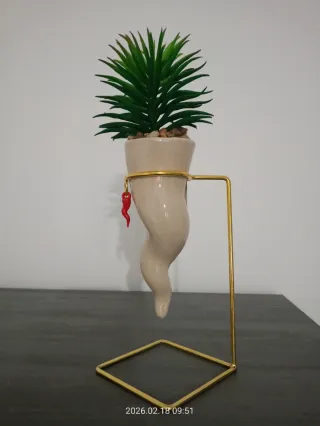 Un simpatico corno portafortuna, perfetto come elemento decorativo. - Realizzato in ceramica lucida. - Completo di catenella con peperoncino rosso. - Supporto in metallo dorato.