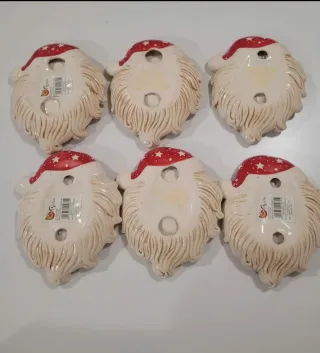 Set di sei piattini a tema natalizio, perfetti per aggiungere un tocco festivo alla tua tavola. - Design a forma di testa di Babbo Natale. - Dettagli colorati sul cappello e sulla barba. - Ideali come sottobicchieri o piccoli piatti da portata o da appendere. Nb; due piattini sono leggermente rotti (vedi foto evidenziata ) LE MISURE SONO MESSE A CASO ...