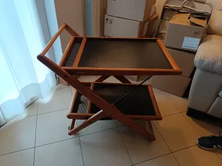 Carrello portavivande Foppapedretti con struttura in legno e piani neri. - Design elegante e funzionale. - Facile da spostare grazie alle ruote.