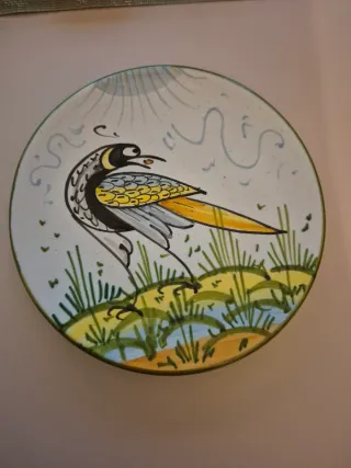 Bellissimo piatto decorativo da parete, perfetto per aggiungere un tocco artistico alla tua casa. Il design raffigura un uccello colorato in un paesaggio naturale. - Realizzato in ceramica. - Decorazione murale unica. - Motivo con uccello e vegetazione. 9 euro Tris di farfalline 7 euro. Se prese insieme 14 euro