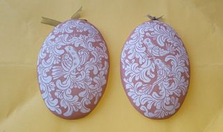 Coppia di decorazioni in terracotta da parete decorate a mano con motivi di uccelli, forma ovale concavo 18 x 13 cm, spessore 1 cm. In stato perfetto. Garantisco imballo anti lancio dei corrieri.