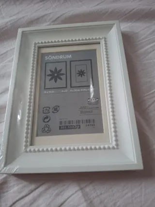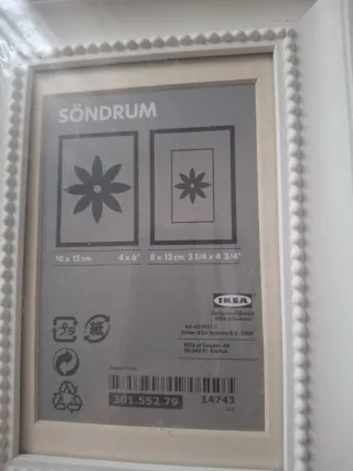 Elegante cornice SÖNDRUM di IKEA, perfetta per esporre le tue foto preferite. Il design pulito si adatta a qualsiasi arredamento. - Dimensioni foto: 10x15 cm. - Finitura bianca con dettagli decorativi. - Materiale plastico resistente.